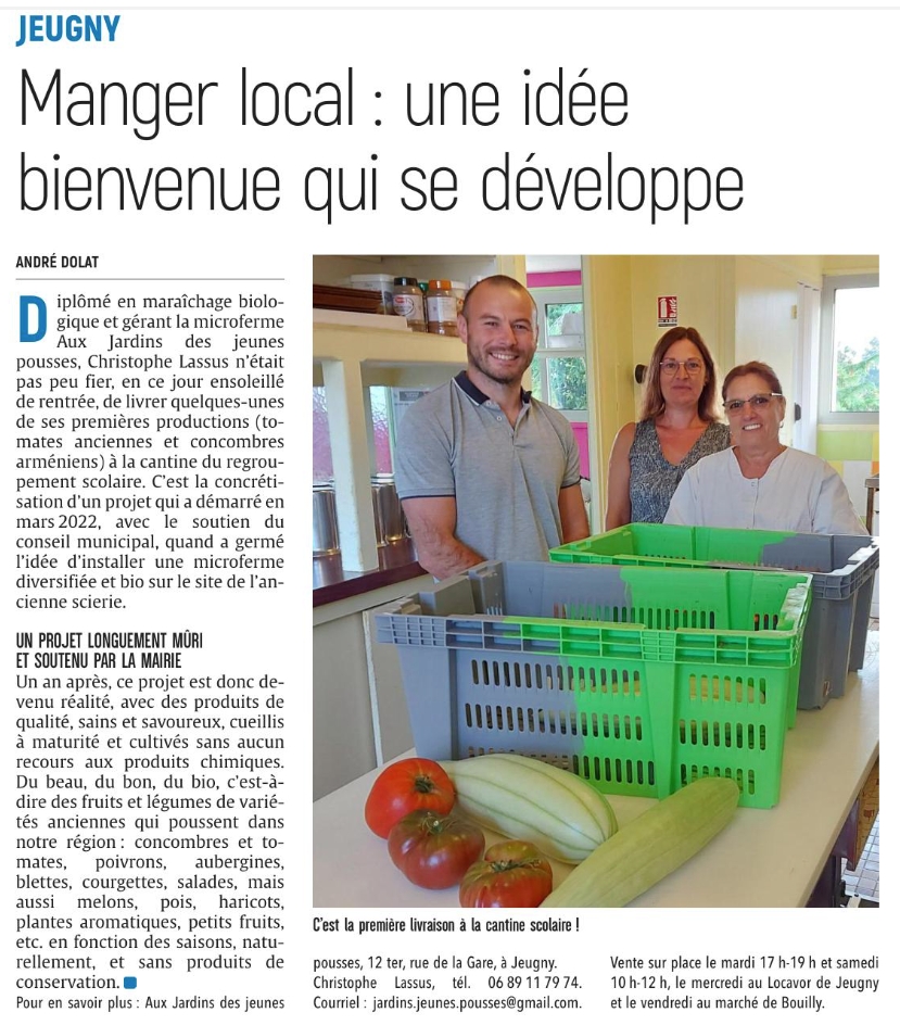 Fondée en fin d’année 2022, la Microferme Aux Jardins des jeunes pousses est une entreprise individuelle agricole Bio qui depuis sa création s’engage à respecter les normes de l’agriculture bio et de procurer des produits de qualité aux consommateurs. Ayant obtenu mon diplôme BPREA de maraichage biologique, j’ai installé mon exploitation dans la commune de Jeugny afin de favoriser le commerce de proximité, les circuits courts et m’inscrire dans la vie du village. En tant que producteur de légumes et petits fruits, je mets à la disposition de ma clientèle plusieurs produits issus d’une agriculture saine et qui respectent les lois de la nature. Découvrez des produits de qualité, sains et savoureux, cueillis à maturité et cultivés sans aucun recours aux produits chimiques. Sachez, toutefois, que lorsque vous choisissez des produits bio, vous êtes en train de minimiser la pollution des nappes d’eau souterraines par les pesticides et vous boostez votre santé en faisant le choix d’un produit naturel.